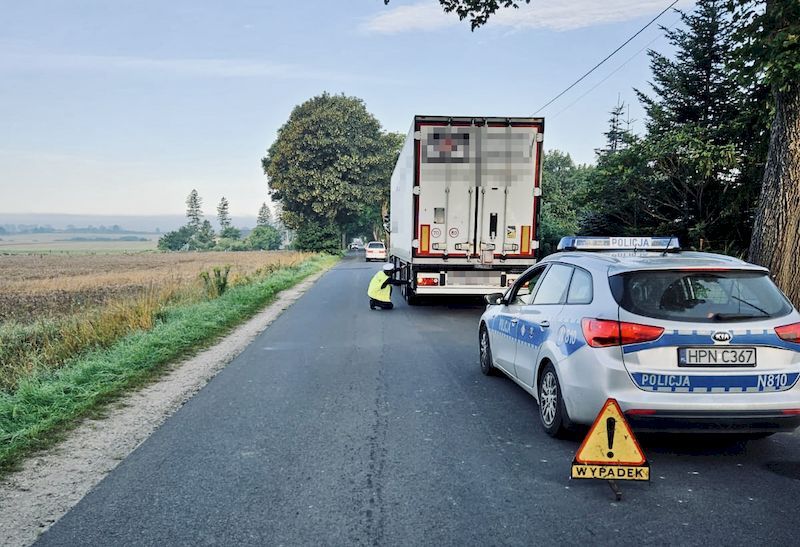 [1/1] Tragiczny wypadek w Gminie Potęgowo. Ciężarówka najechała na leżącego na drodze mężczyznę.