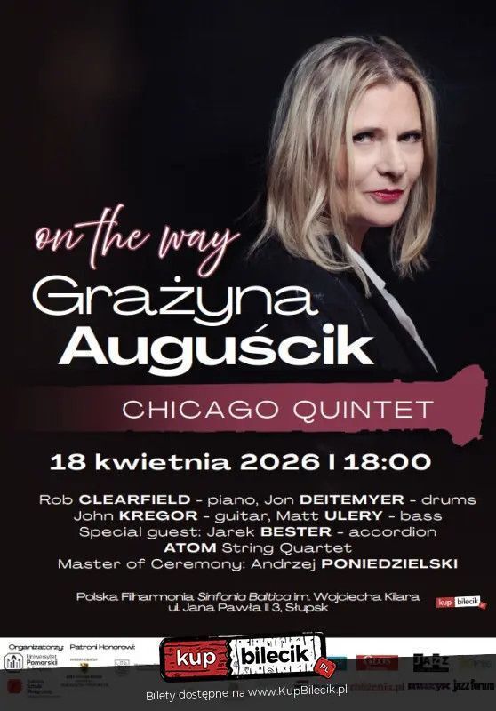 4 Festiwal "All That Jazz" organizowany przez Katedrę Sztuki Muzycznej, Uniwersytetu Pomorskiego w Słupsku, prezentuje koncert specjalny: On The Way Grażyna Auguscik Chicago Quintet i goście specjalni.